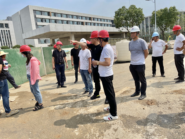 6月11日下午,我司董事长张世海先生带领项目部余伟峰经理、分江南官方站网页版丁总,陪同开发区管委会总江南官方站网页版金业友主任、开发区管委会建筑科林清主任、江苏软件园管理处侯伟主任、金剑锋副主任等等前往江宁区党校开发区项目部检查工程进度和工程质量,并对工程建设者进行慰问。